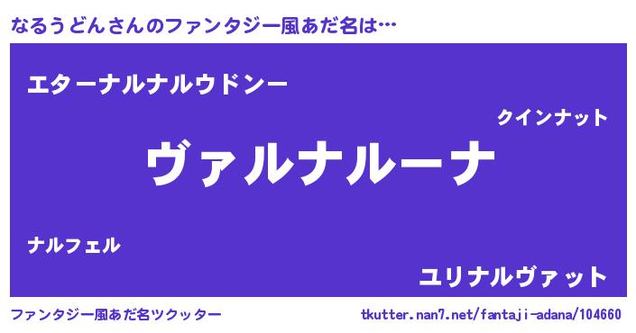 | 胡散臭い通販商品みたいなあだ名 | 『あなたにだけ特別に提供する世界で10本だけ現存している希少なブランデー…その名も「なるうどん」』 |