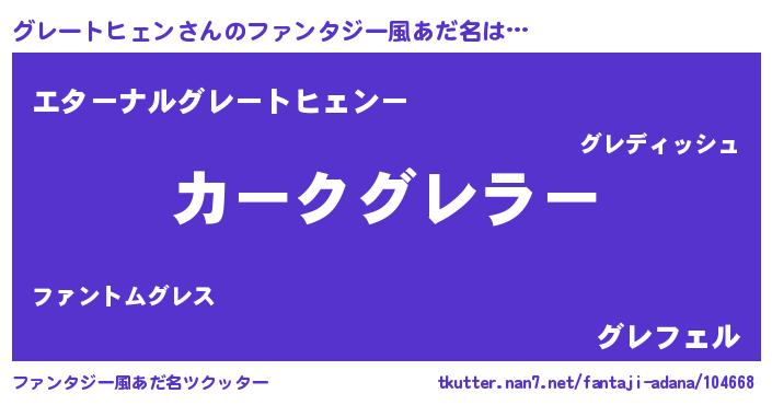 | ヒーロー風カッコイイあだ名 | 『ウルトラグレートヒェンマン』 |