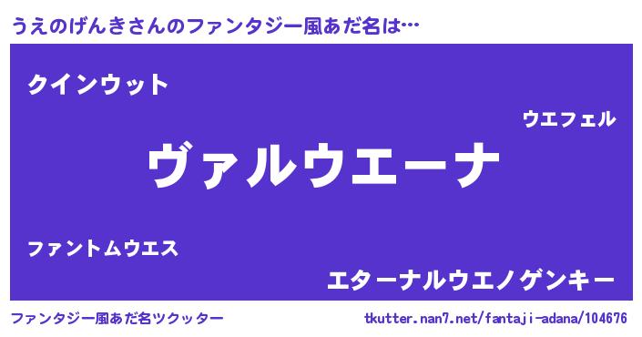| 男性向けラノベタイトル風あだ名 | 『魔弾の王とうえのげんき』 |