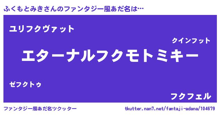 | 男性向けラノベタイトル風あだ名 | 『やはりふくもとみきの青春ラブコメはまちがっている 』 |