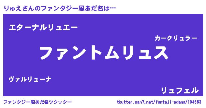 | 女子向けラノベタイトル風あだ名 | 『りゅえ様がみてる』『りゅえ伯爵の花嫁』 |
