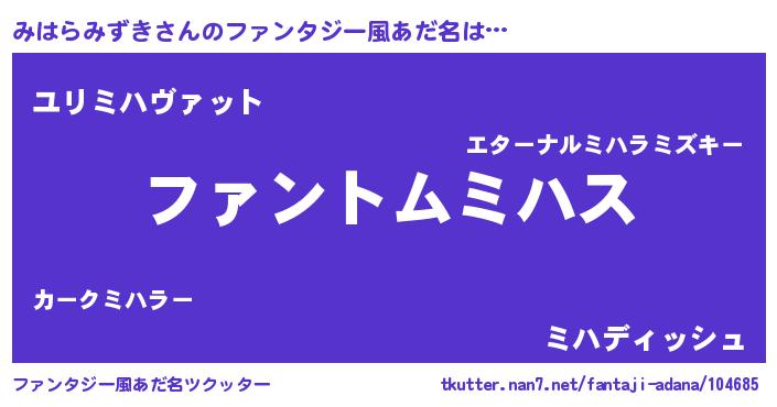 | ポケモン風あだ名 | 『ヒミハラミズキ』『ミハキング』 |