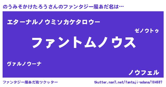 | 男性向けラノベタイトル風あだ名 | 『のうみそかけたろうの嫁は女の子じゃないと思った?』 |