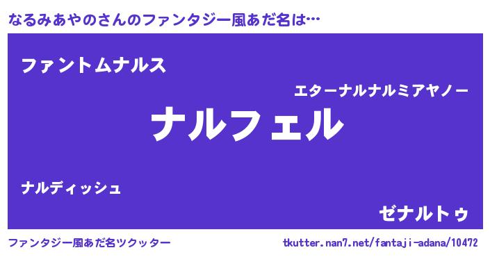 | ポケモン風あだ名 | 『ナルチュウ』『ヒナルミアヤノ』 |