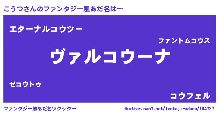 | 男性向けラノベタイトル風あだ名 | 『この素晴らしい世界にこうつを!』 |