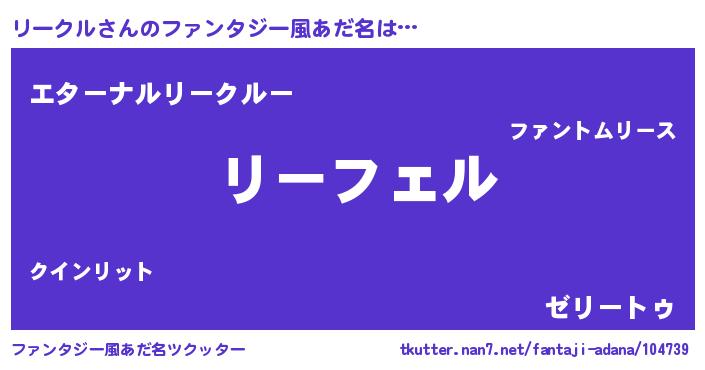 | ヒーロー風カッコイイあだ名 | 『スーパーリークル』『究極戦士リークル』 |