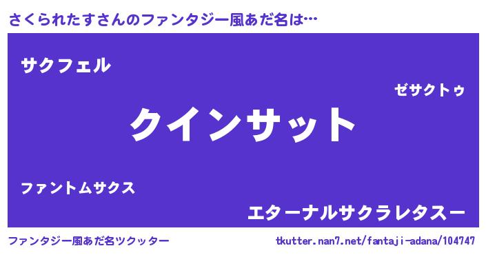 | 女子向けラノベタイトル風あだ名 | 『さくられたす夫妻のなれそめ』 |