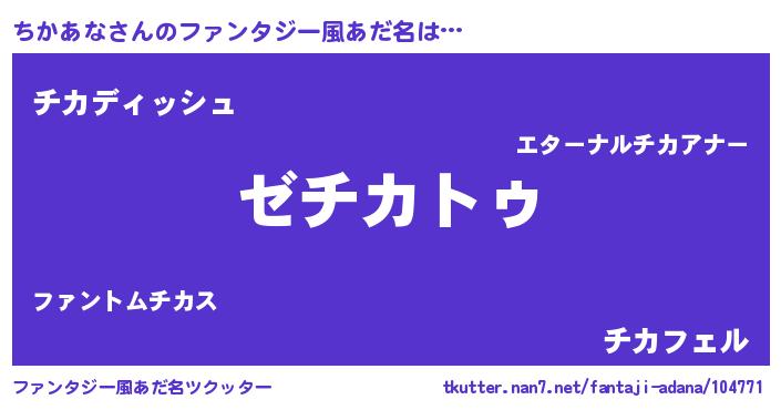 | ポケモン風あだ名 | 『チカセウス』『ゼニチカ』 |