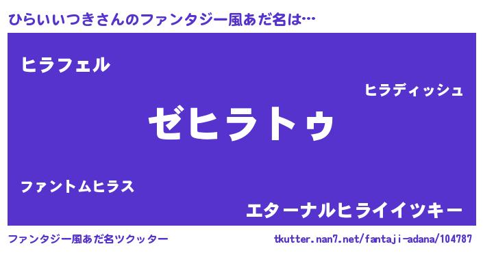 | 女子向けラノベタイトル風あだ名 | 『ひらいいつきなんてお断りですっ。』 |