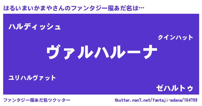 | 男性向けラノベタイトル風あだ名 | 『はるいまいかまやに滅ぼされるだけの簡単なお仕事です』 |