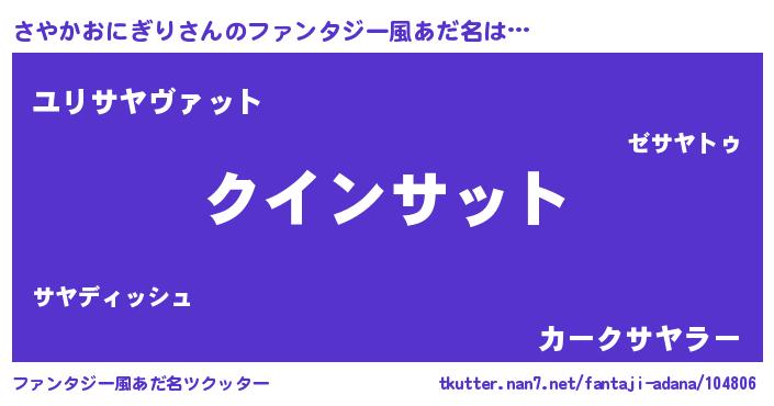 | 男性向けラノベタイトル風あだ名 | 『ノーゲーム・ノーサヤカオニギリ』 |