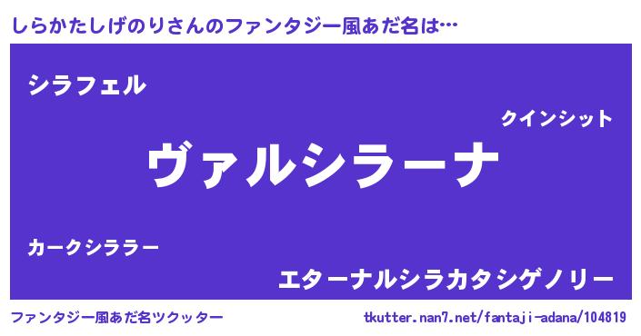 | 男性向けラノベタイトル風あだ名 | 『魔弾の王としらかたしげのり』 |