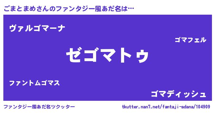 | 男性向けラノベタイトル風あだ名 | 『Re:ごまとまめから始める異世界生活』 |