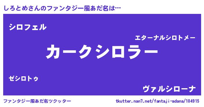 | 意味不明あだ名 | 『ペロリンしろとめ』『自称しろとめ』 |