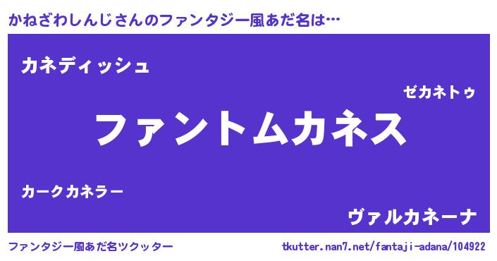 | 女子向けラノベタイトル風あだ名 | 『かねざわしんじの卵を拾いまして』 |