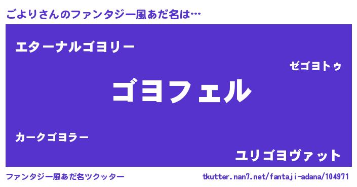 | 男性向けラノベタイトル風あだ名 | 『ごよりの憂鬱』『魔法科高校のごより』 |