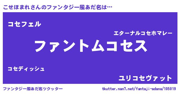 | ポケモン風あだ名 | 『ヒコセホマレ』『コセチュウ』 |
