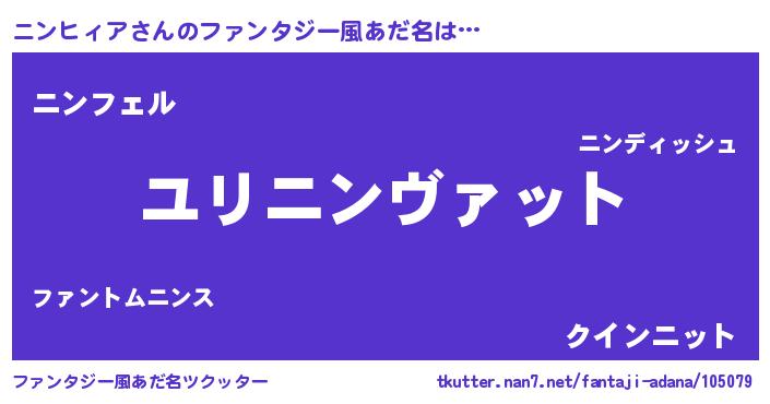 | 男性向けラノベタイトル風あだ名 | 『ニンヒィアスレイヤー』 |