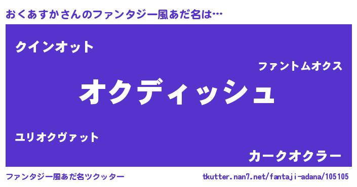| 男性向けラノベタイトル風あだ名 | 『おくあすかという概念が存在しない退屈な世界 』 |