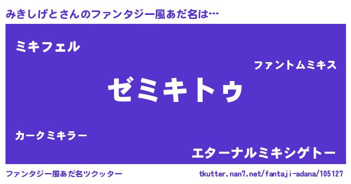 | ヒーロー風カッコイイあだ名 | 『ウルトラ戦士ミキシゲト』 |