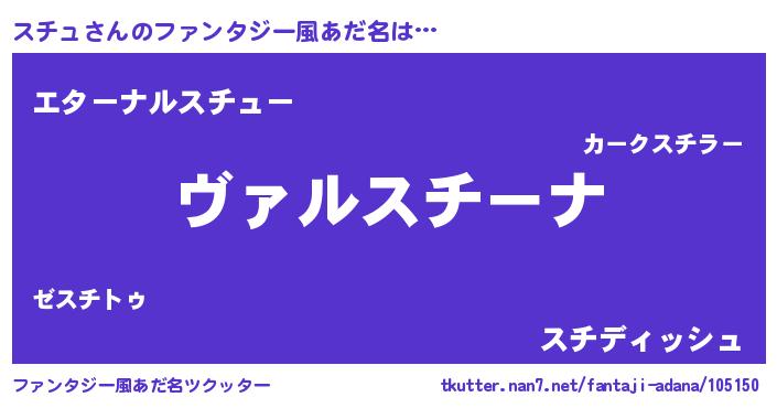 | 男性向けラノベタイトル風あだ名 | 『魔弾の王とスチュ』『緋弾のスチュ』 |