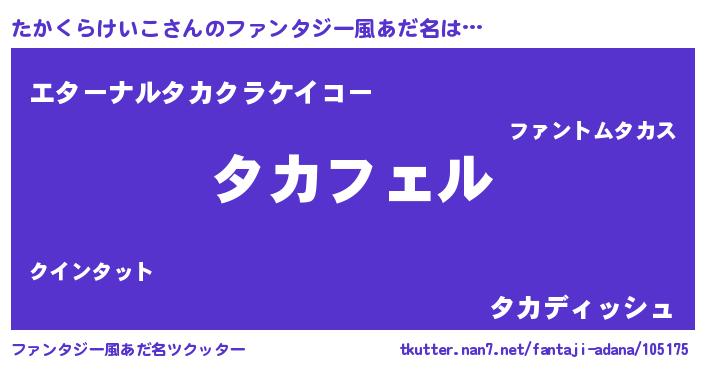 | ヒーロー風カッコイイあだ名 | 『スーパータカクラケイコ』 |