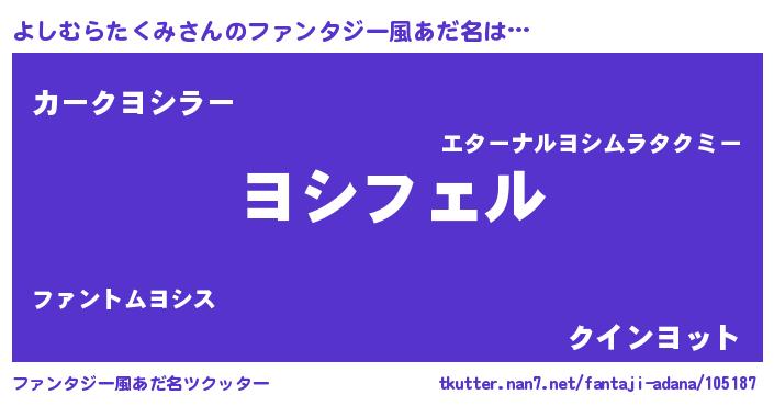 | 男性向けラノベタイトル風あだ名 | 『ヨシムラタクミアートオンライン』 |