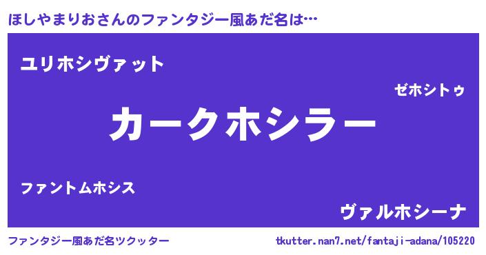 | 欧米人風あだ名 | 『ほしやまりお・ステッグマイヤー』 |