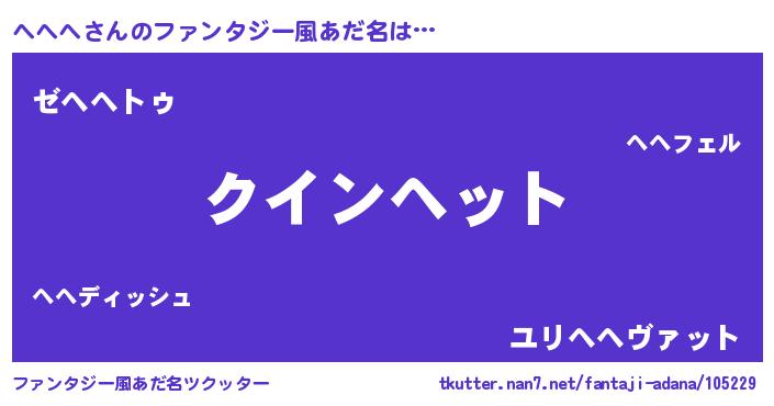 | 男性向けラノベタイトル風あだ名 | 『ノーゲーム・ノーヘヘヘ』 |