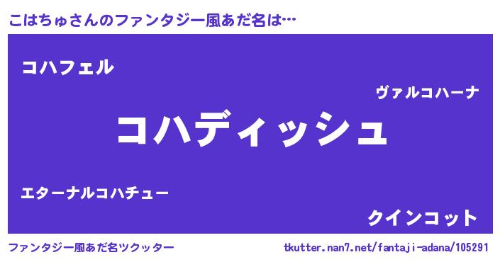 | 胡散臭い通販商品みたいなあだ名 | 『絶対に幸福をもたらす健康食品…その名も「こはちゅ」』 |