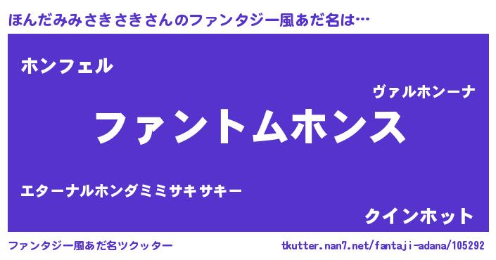 | 女子向けラノベタイトル風あだ名 | 『ほんだみみさきさき様がみてる』 |