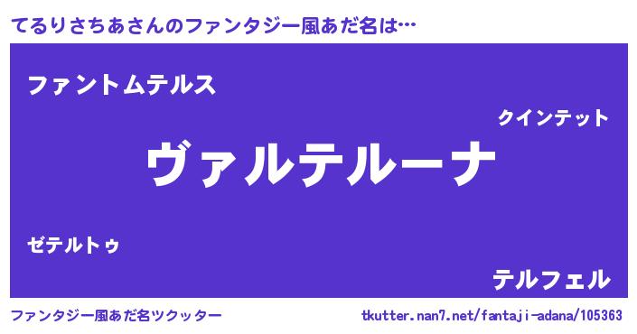 | 意味不明あだ名 | 『住所不定無職てるりさちあ(39歳)』 |