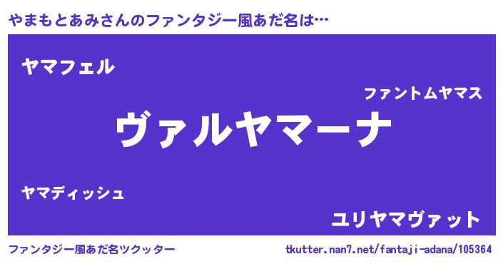 | 男性向けラノベタイトル風あだ名 | 『魔弾の王とやまもとあみ』 |