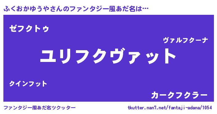 | 男性向けラノベタイトル風あだ名 | 『ふくおかゆうや~年齢イコール彼女いない歴の魔法使い~』 |