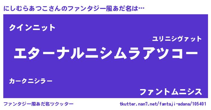 | 欧米人風あだ名 | 『アンジェラ・にしむらあつこ』 |