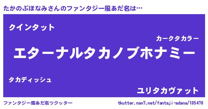 | 意味不明あだ名 | 『たかのぶほなみフォーエバー』 |