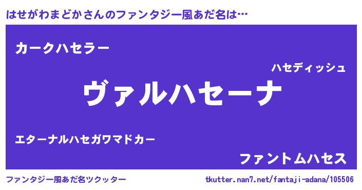 | 意味不明あだ名 | 『住所不定無職はせがわまどか(93歳)』 |