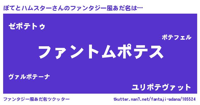 | ポケモン風あだ名 | 『ヒポテトハムスター』『ポテセウス』 |