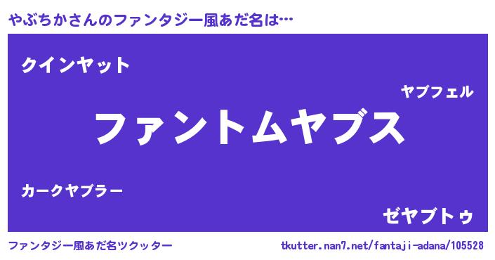 | ヒーロー風カッコイイあだ名 | 『幻影騎士ヤブ』『慈愛の使者やぶちか』 |