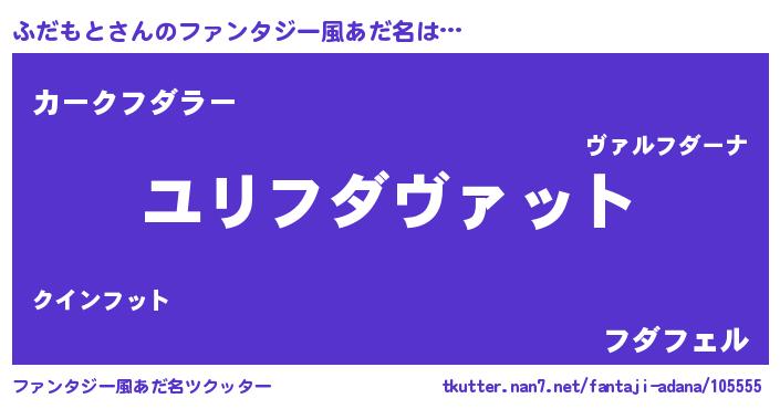 | 男性向けラノベタイトル風あだ名 | 『フダモトスレイヤー』 |