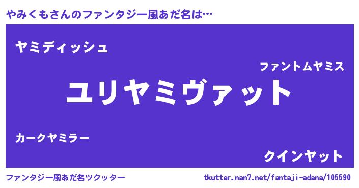 | 男性向けラノベタイトル風あだ名 | 『やみくも~年齢イコール彼女いない歴の魔法使い~』 |
