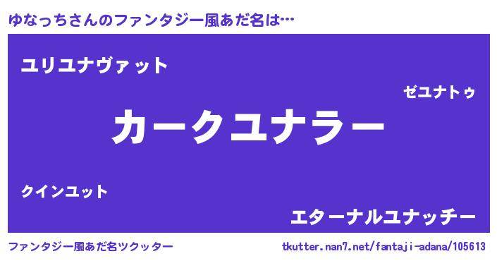 | 意味不明あだ名 | 『なめこ科ゆなっち属』『自称ゆなっち』 |