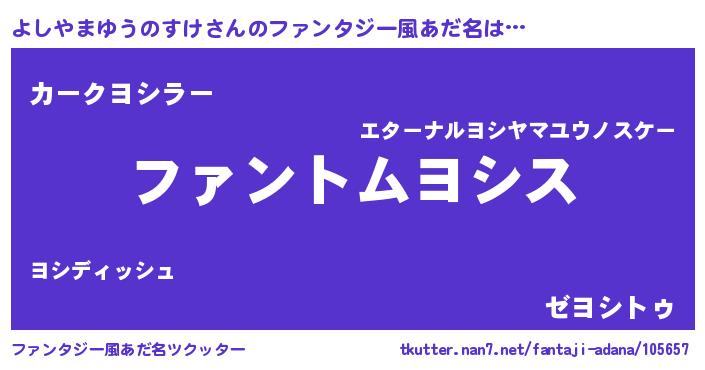 | 男性向けラノベタイトル風あだ名 | 『ダンジョンによしやまゆうのすけを求めるのは間違っているだろうか』 |