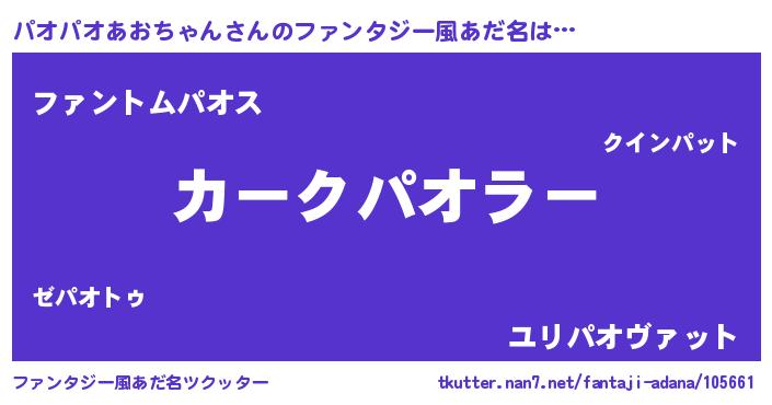 | 伝説のあだ名 | 『覚醒した遊び人パオパオあおちゃん』 |