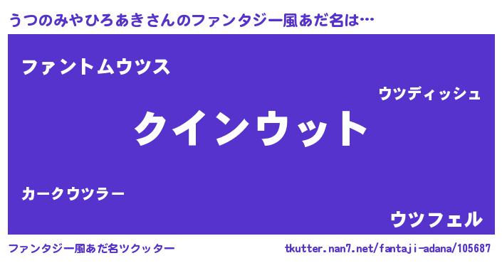 | ポケモン風あだ名 | 『ウックウザ』『ヒウツノミヤヒロアキ』 |