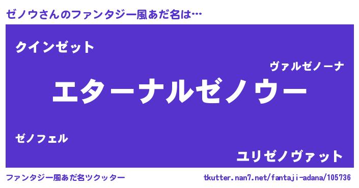 | 女子向けラノベタイトル風あだ名 | 『ゼノウの雑貨屋さん』『ゼノウ恋絵巻』 |