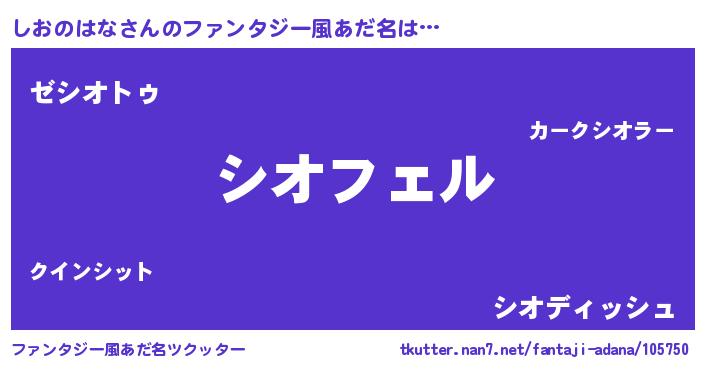 | ヒーロー風カッコイイあだ名 | 『スーパーシオノハナ』『ネオシオノハナ』 |