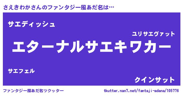 | 意味不明あだ名 | 『さえきわかフォーエバー』 |