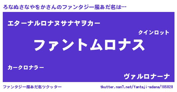 | 女子向けラノベタイトル風あだ名 | 『ろなぬさなやをかは平凡を望む』 |