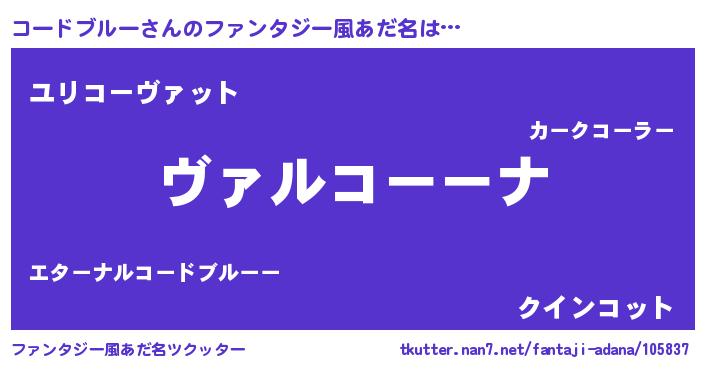 | 男性向けラノベタイトル風あだ名 | 『この素晴らしい世界にコードブルーを!』 |
